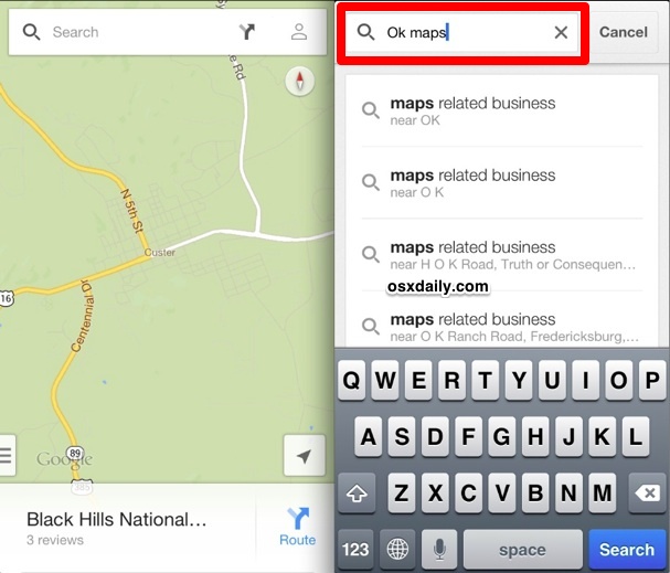 Используйте функцию «Ok Maps»