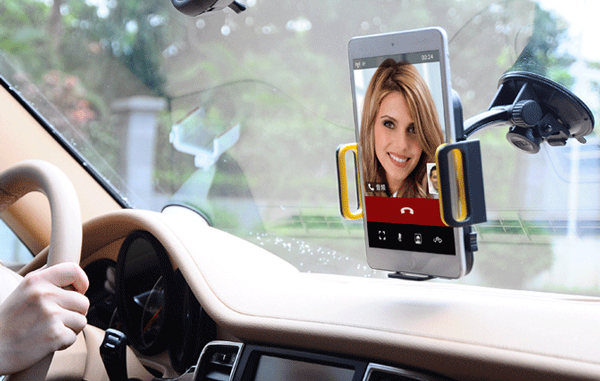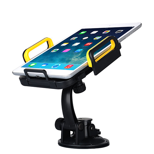 Держатель для планшета в автомобиль. Держатель крепится на лобовое стекло к помощью полиуретановой присоски, которая изготовлена по специальной технологии и максимально надежно держится на стекле.