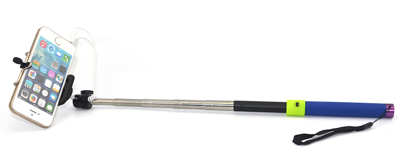 Длина монопода в разложенном состоянии 95 см, что является больше среднего и позволит поместить в селфи еще больше! Палка представлена в 3-х цветовых решениях: черный, синий и красный с яркой зоной, в которой устанолена кнопка для спуска затвора.