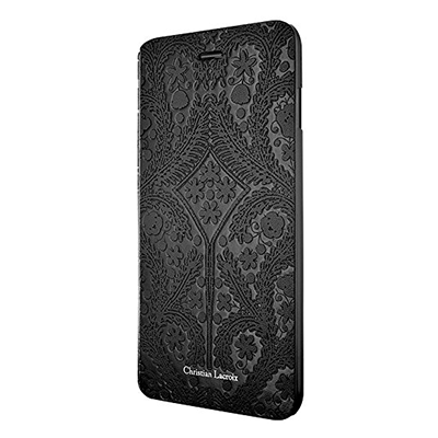 Дизайнерский чехол-книжка из эко-кожи и подкладкой из микофибры. Чехол украшен тисненым иконическим орнаментом марки Christain Lacroix и небольшим металлическим логотипом. Это шикарный акссесуар для iPhone, который может прекрасным дополнением к модному образу своего счастливого обладателя.