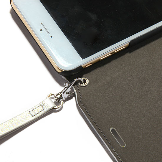 Чехол застегивается на небольшой клапан с магнитом, который можно легко расстегнуть, если вам нужно быстро ответить на звонок или просмотреть сообщение. На обложке также предусмотрена специальная прорезь над слуховым динамикм, поэтому разговор можно вести и с закрытм чехлом. В комлекте также есть отстегивающийся кожаный ремешок, с помощью которого можно повесить аксессар на руку, он также уменьшает вероятность случайно выронить телефон.