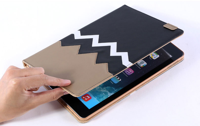 Стильный чехол-книжка из современных ярких материалов, подходит для iPad Mini/Retina/3. Простой и, вместе с тем, необычный дизайн с зигзагообразным орнаментом подчеркивает динамичность и неординарность характера обладателей такого аксессуара.