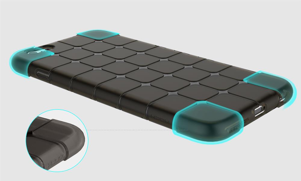 Необычный дизайн создает впечатление, что чехол состоит из нескольких квадратов, соединённых лишь небольшими перемычками, на самом же деле чехол цельный, но толщина пластика в разных его частях различается - от ультра-тонкого до усиленного на углах.