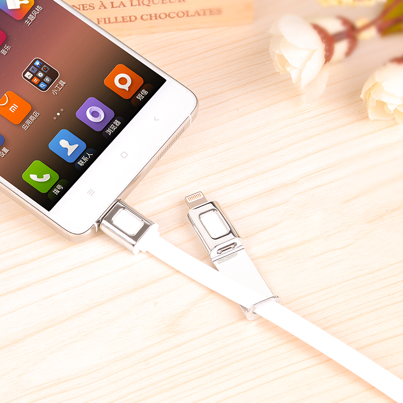 Универсальный кабель для зарядки и синхронизации с двумя с разъемами - Lightning и Micro USB. Он подойдет как для большинства устройств Apple, так и для почти всех устройств на платфоре Android и Windows Phone.