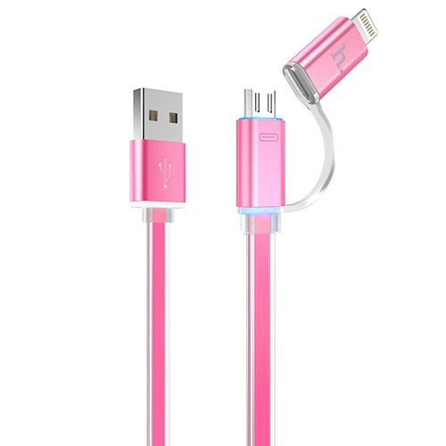 Кабель для iPhone/ iPad HOCO Lightning-USB + MicroUSB Data Jelly Metal 120cм
