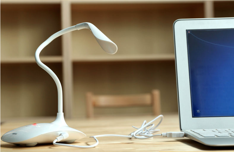 LED подсветка, использованная в лампе, безвредна для глаз, потребляет минимальное количество энергии и обеспечивает три режима яркости освещения для полноценной работы. Для зарядки лампы можно использовать USB-порт компьютера или розетку и адаптер, во время зарядке на основании загорается красный индикатор.
