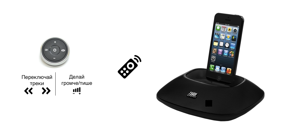 Еще одна полезная функция данного пульта. Если Вы обладатель, например,  акустической системы для iPhone, iPad или Android-устройства,  теперь не нужно подходить к станции для переключения трека или изменения громкости - сделайте это дистанционно.Bluetooth кнопка из набора для селфи - отличная альтернатива пульту управления мультимедийной системы для iPhone!