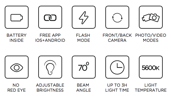 Устройство можно также использовать в качестве вспышки или подсветки с iPad, у которых в конструкции отстутсвует этот элемент. Использование iBlazr с iPad будет очень удобно при совершении видеозвонков ночью или в темном помещении, без необходимости включать дополнительный свет. iBlazr можно также использовать в режиме постоянного света при съемке видео на смартфон.