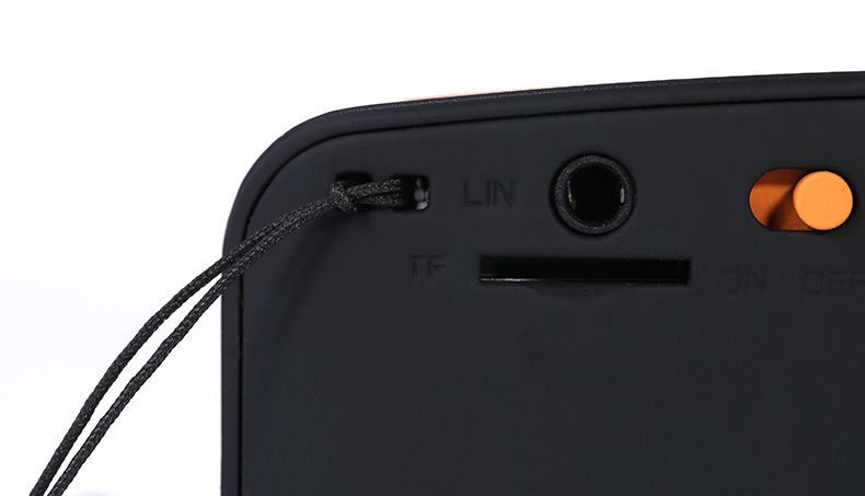 Динамик может воспроизводить музыку со смартфона, плеера, планшета или ноутбука, соединение устанавливается по Bluetooth или через AUX-разъем в задней части. Там же расположен переключатель вкл./выкл. и слот для карты памяти Micro SD.