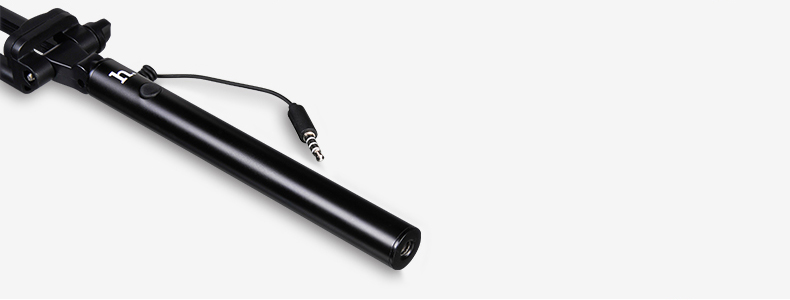 Монопод очень просто подклчается к аудио-разъему любого смартфона с помощью кабеля 3,5 мм универсальной длины. Чтобы снять фото или видео, достаточно нажать на кнопку на ручке штатива.