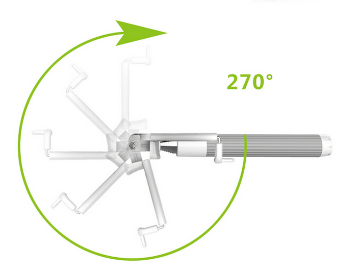 Новая система крепления позволяет превратить монопод в компактное устройство! Теперь не нужно каждый раз снимать зажим, достаточно его прижать к рукоятке монопода и кинуть в карман. Крепление имеет угол поворота 270°, благодаря чему Вы сможете выбрать удобный ракурс для Вашего selfie.