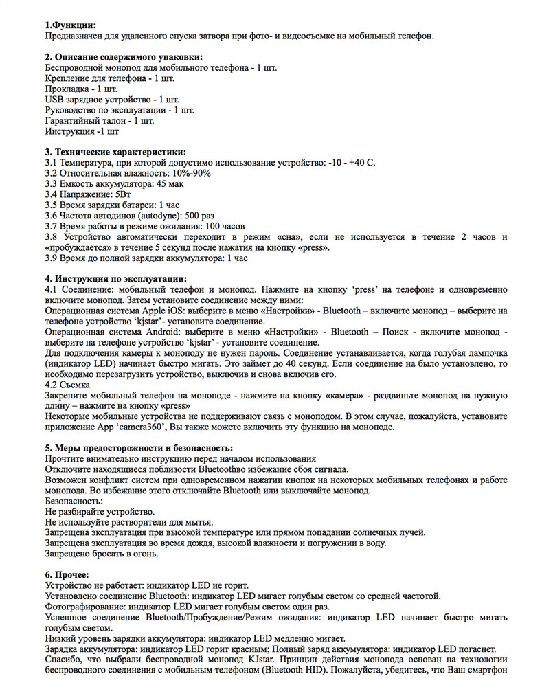 Благодаря работе по беспроводной технологии Bluetooth - монопод поддерживает работу с большинтвом популярных на сегодня мобильных телефонов.