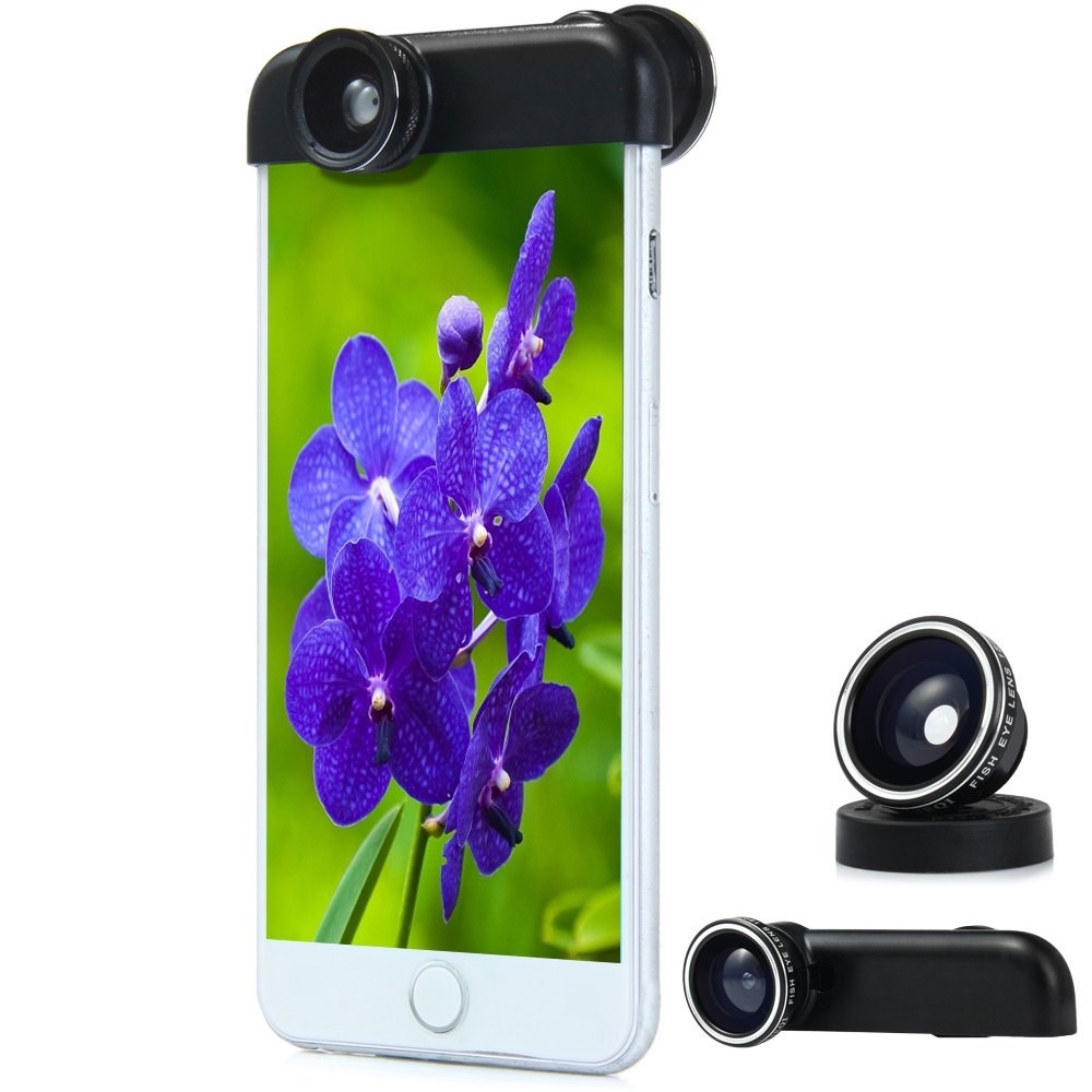 - Включает в себя 3 линзы: Fisheye, Макро ( macro ) объектив,широкоугольная линза