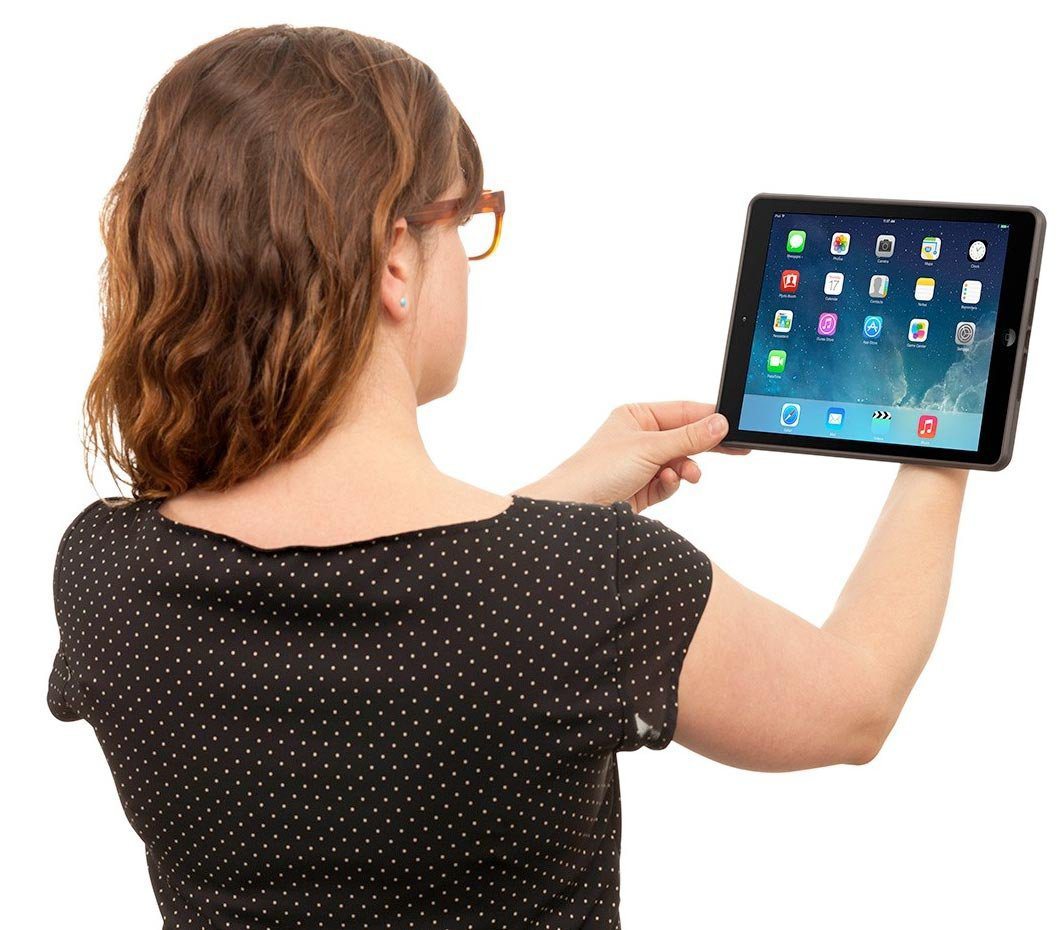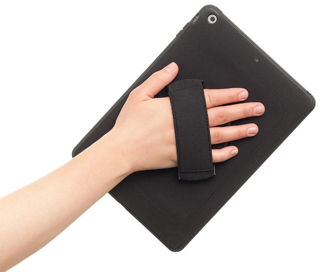 Удобный оригинальный чехол для iPad Air. Благодаря эластичному держателю на задней части, шансы уронить iPad практически сводятся к нулю, он надежно прижимает планшет к руке и при этом не давит на нее.