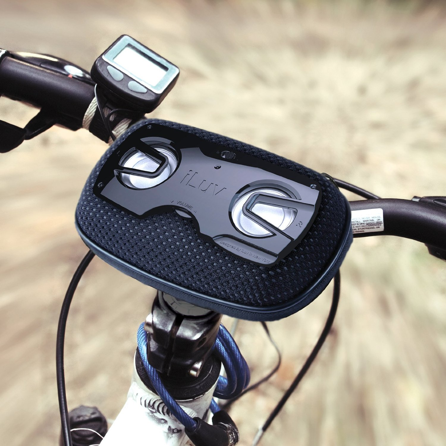 Чехол-держатель со встроенными динамиками. Очень удобное приспособление для любителей спорта, активного отдыха и велосипедных прогулок. MP3-плеер или телефон (практически любого производителя) вкладывается в специальный внутренний кармашек чехла, в котором есть встроенный кабель 3,5 mm, который подключается к аудиоразъему, чехол застегивается на молнию и закрепляется на одежде, рюкзаке или руле велосипеда. На чехле предусмотрено крепление-карабин для надежной фиксации.