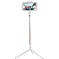 Теперь Вы можете фотографировать себя не только на расстоянии вытянутой руки, но и и на расстоянии действия Bluetooth кнопки, которая встроена в съемную рукоять монопода, установив ваш телефон на напольный или настольный штатив, хоть посреди поля!