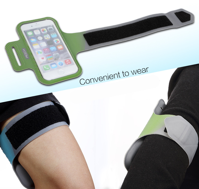 Спортивный чехол для iPhone 6 или iPhone 6S. Чехол сделан из эластичного материала, не пропускающего пот и влагу и достаточно комфортного для кожи. Ремешок из этого же материала позволяет легко и комфортно зафиксировать чехол на руке в районе бицепса, что очень удобно при беге или выполнении физических упражнений. Кстати, ремешок регулируется, поэтому подойдет как для мощных парней из "качалки", так и для хрупких девушек с аэробики.