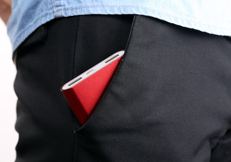 Корпус аккумулятора сделан из алюминия со специальным цветным покрытием, который делает устройство прочным и приятным на вид. При все своей мощности этот power bank еще очень компактный - легко помещается в карман.