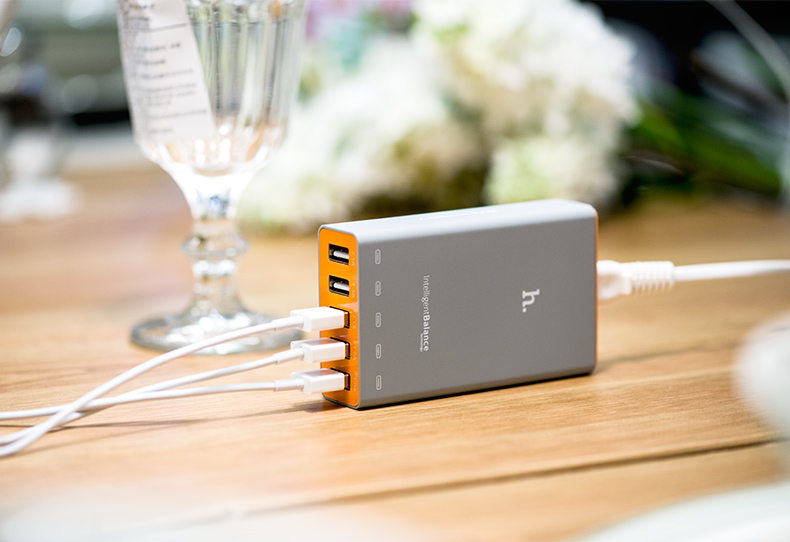 Разные порты устройства выдают разное напряжение: от 1А, достаточного для зарядки смарфона или плеера, до 2,1А, подходящих для быстрой зарядки iPad. Специальная интеллектуальная система распределяет входящий ток и предохраняет устройства от перепадов напряжения и короткого замыкания, она же обеспечивает на 30% более быструю зарядку. Сама станция питается от обычной розетки.